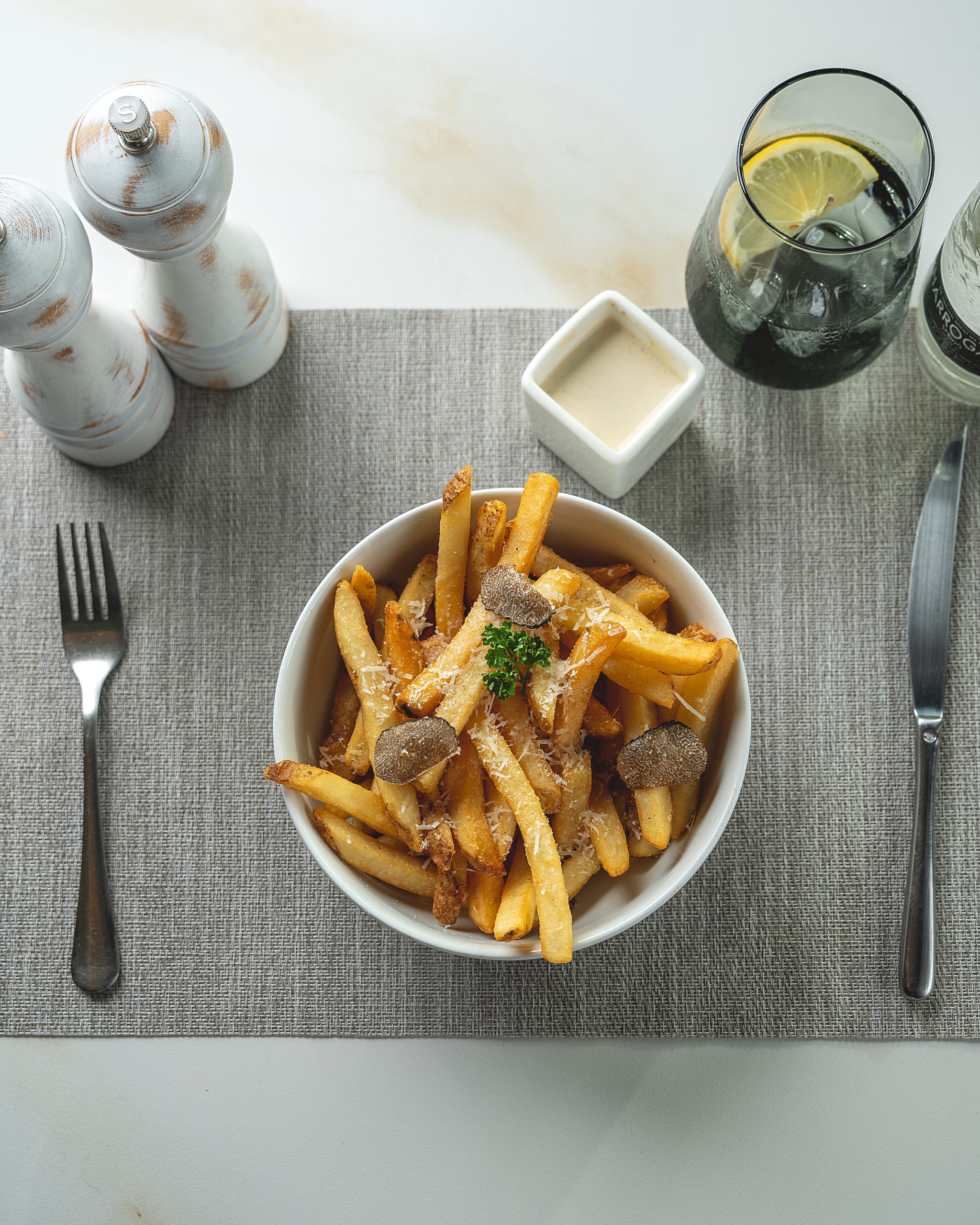 French Fries, Truffle Sauce, Truffle Fresh.-بطاطس مقلية، صلصة الكمأة، كمأة طازجة