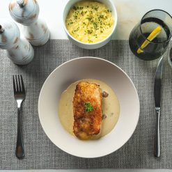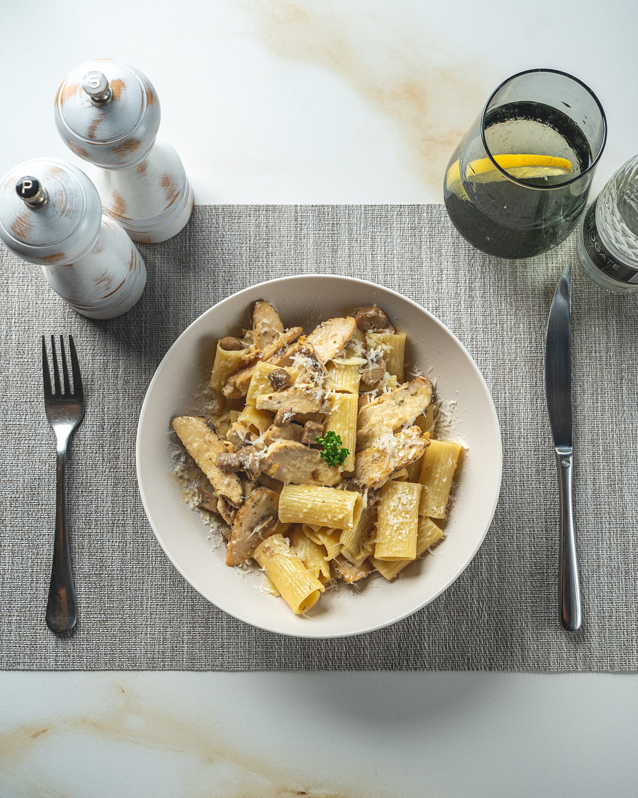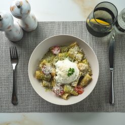 Rigatoni pasta tossed in a rich, creamy Alfredo sauce with tender chicken and sautéed mushrooms. Finished with shaved Parmesan and a delicate sakura mix for a flavorful, elegant Italian classic.